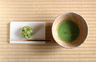 季節の綺麗なお菓子と美味しいお抹茶(季節を感じる趣も日本の文化ならでは)